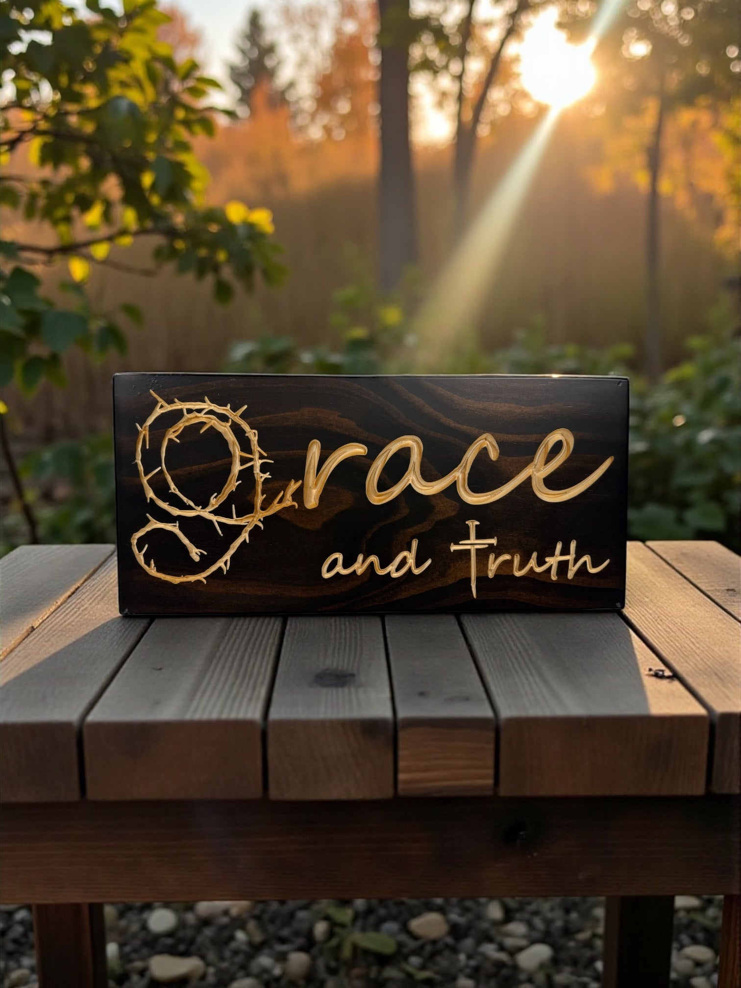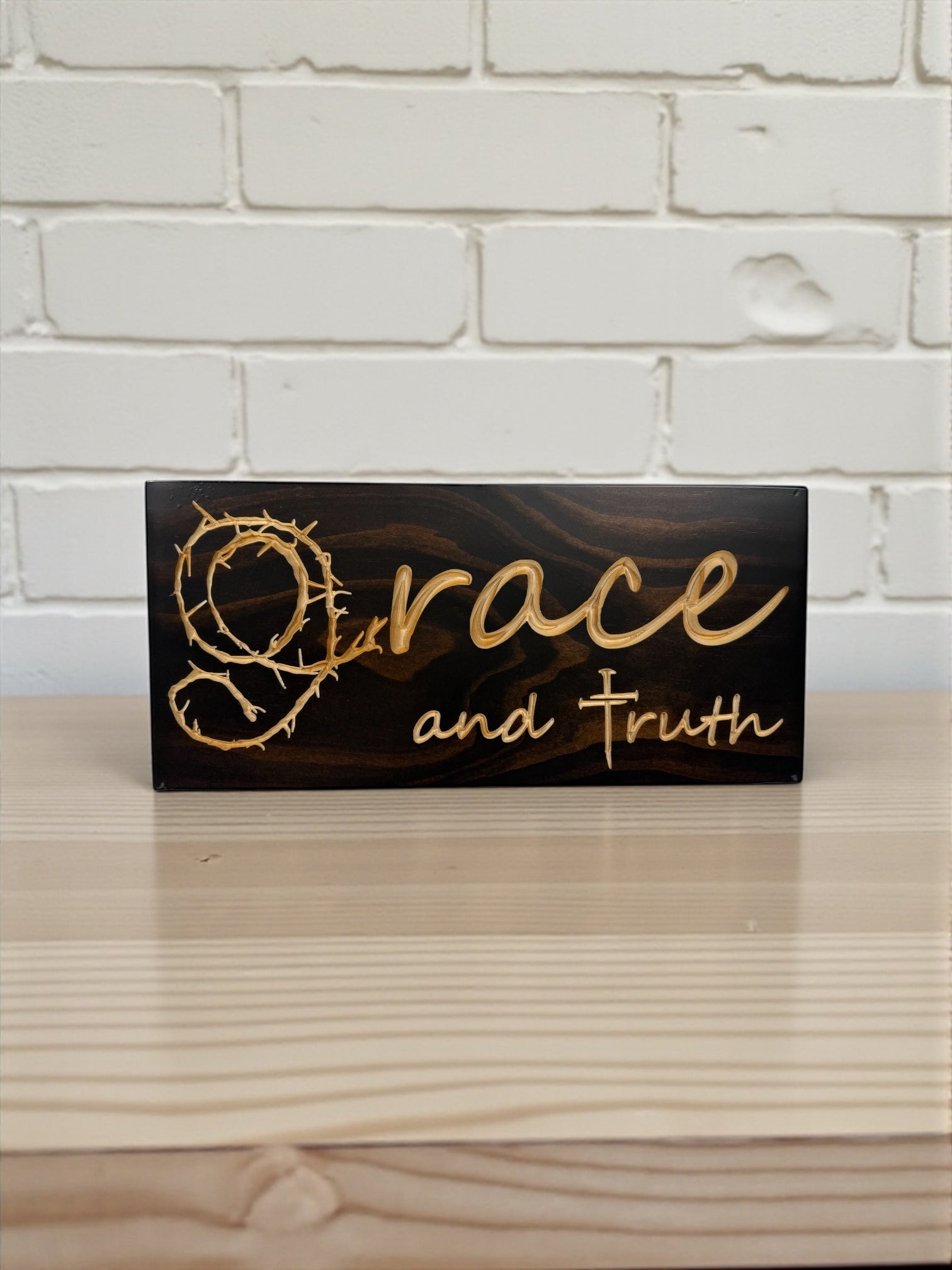 Grace & Truth Wood Sign – Crown of Thorns Design